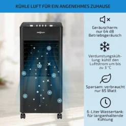 Mobil, kompakt und leistungsstark: Der OneConcept Arctic Cube Luftkühler bringt dich erfrischt durch die Sommerhitze.