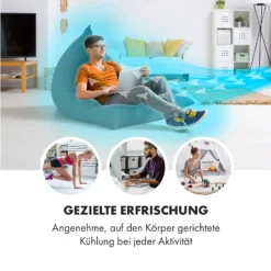 Als mobiler Ventilator gibt der oneConcept CTR-1 Heat stetig einen kraftvollen Luftstrom an den Raum ab und hilft auf unkomplizierte Weise der körpereigenen Temperaturregulierung. Auch wenn er dabei nicht aktiv die Luft kühlt, sorgt er doch für Erfrischung. Dabei kann er mit 3 Lüftergeschwindigkeiten und Betriebsmodi bestens auf die individuellen Erfrischungswünsche eingehen und erreicht einen Luftdurchsatz von bis zu 360 m³ in der Stunde. Auf ganz natürliche Weise vermag er aber auch als Luftkühler den Luftstrom für noch mehr Frische zu kühlen. Dafür wird Wasser aus dem 8 Liter großen Tank in die hindurchströmende Luft verdunstet. Das kühlt den Luftstrom rein physikalisch und sorgt für punktgenaue Erfrischung egal ob du dich am Schreibtisch, auf der Couch oder am Küchentisch aufhältst.