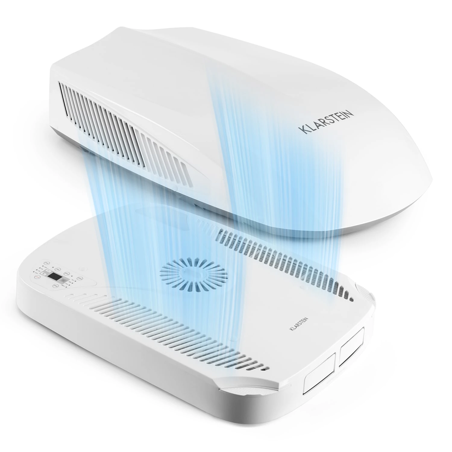 Mit kühlem Kopf auf Achse: Die Klarstein Klimamobil Wohnmobil-Klimaanlage versüßt den Aufenthalt im Caravan mit Wohlfühltemperaturen an kalten und heißen Tagen. Ganz gleich ob Kühlen oder Heizen, Frischluftzufuhr oder Luftentfeuchtung: Das Splitgerät ist für alle Belange gerüstet, um Temperaturen zwischen 16 und 30 °C zu erreichen. Der Ventilator mit Oszillation sorgt dabei für eine angenehme Luftzirkulation. Der Klarstein Klimamobil RV-Air-Conditioner eignet sich zur Montage auf Dachöffnungen von 356×356 mm und Dächern mit einer Dicke von 30 bis 80 mm.
