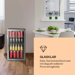 Beersafe 4XL Kühlschrank 124 Liter 4 Böden Panoramaglastür Edelstahl