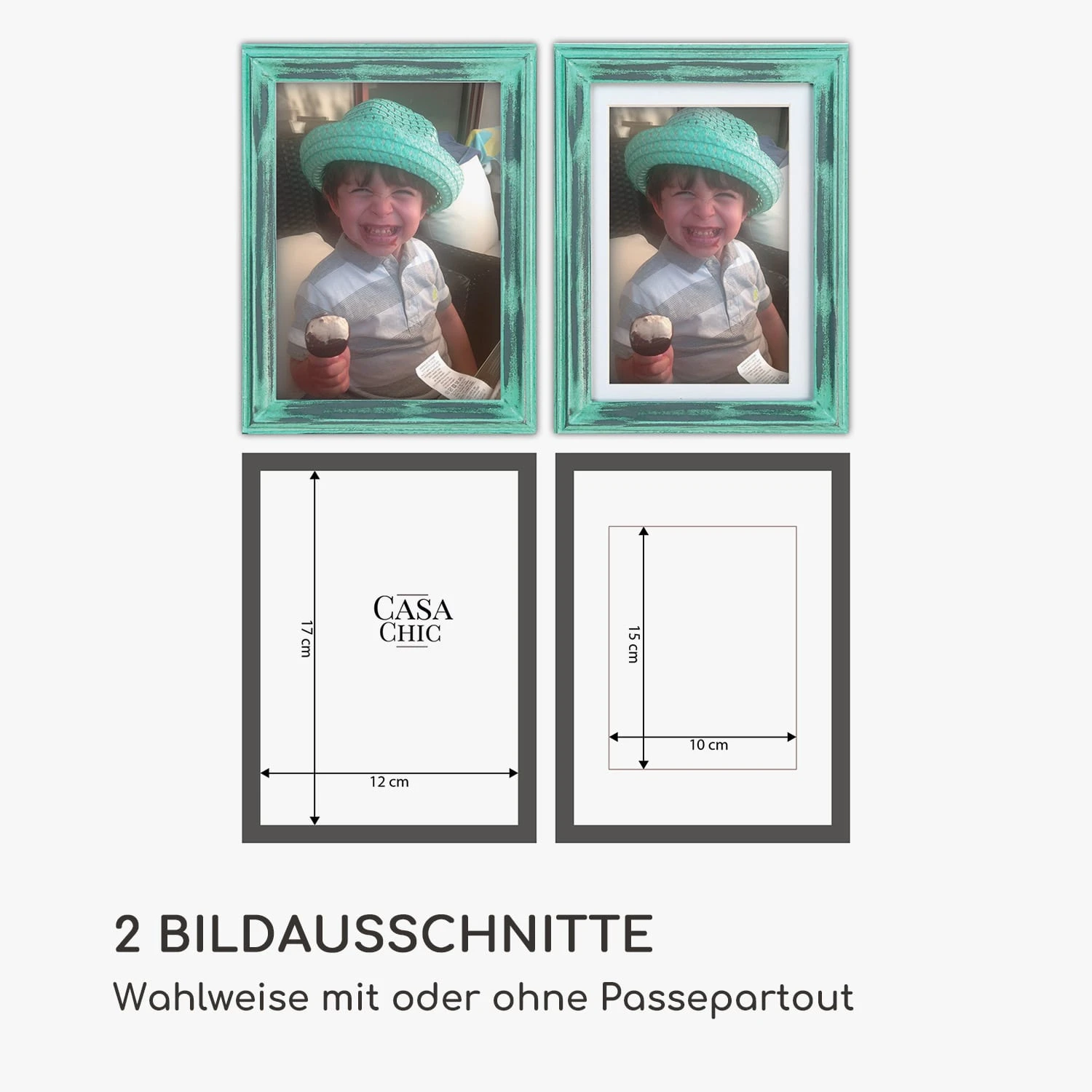 Jeder Rahmen ist ein Unikat: Die Lancaster Bilderrahmen von Casa Chic by blumfeldt aus edlem Pinienholz im Shabby-Chic-Look sind handgearbeitet und bringt deine Fotos und Bilder sowohl im Hoch- als auch im Querformat ideal zur Geltung. Bleibe flexibel und gestalte wunderschöne Wandcollagen oder arrangiere deine Lieblingsfotos auf dem Sideboard oder im Regal. Das mitgelieferte Passepartout überlässt dir die Wahl des passenden Bildausschnitts. Das gleichmäßig breite Rahmenprofil und die Frontscheibe aus Echtglas sorgen für Eleganz und besten Schutz.