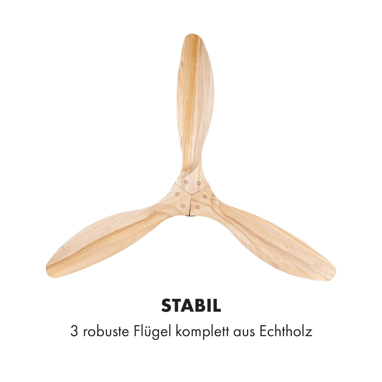 Mit einem Durchmesser von 52″ (132 cm) und seinen 3 Geschwindigkeitsstufen hoch, mittel, niedrig setzt der Klarstein Santa Elena Deckenventilator auf Knopfdruck zuverlässig Luftmassen in Bewegung. Dabei bewegt er bis zu 9.060 m³ Luft in der Stunde. Seine drei robusten Flügel aus Echtholz sehen nicht nur besonders edel aus, sondern sind bei einem maximalen Betriebsgeräusch von nur 45 dB auch äußerst laufruhig. Ein vierstufiger Abschalt-Timer mit bis zu 8 Stunden Dauer ermöglicht den unkomplizierten Betrieb – zum Beispiel als Erfrischer beim Einschlafen. Darüber hinaus können alle Funktionen des Santa Elena direkt vom Boden per Fernbedienung gesteuert werden.