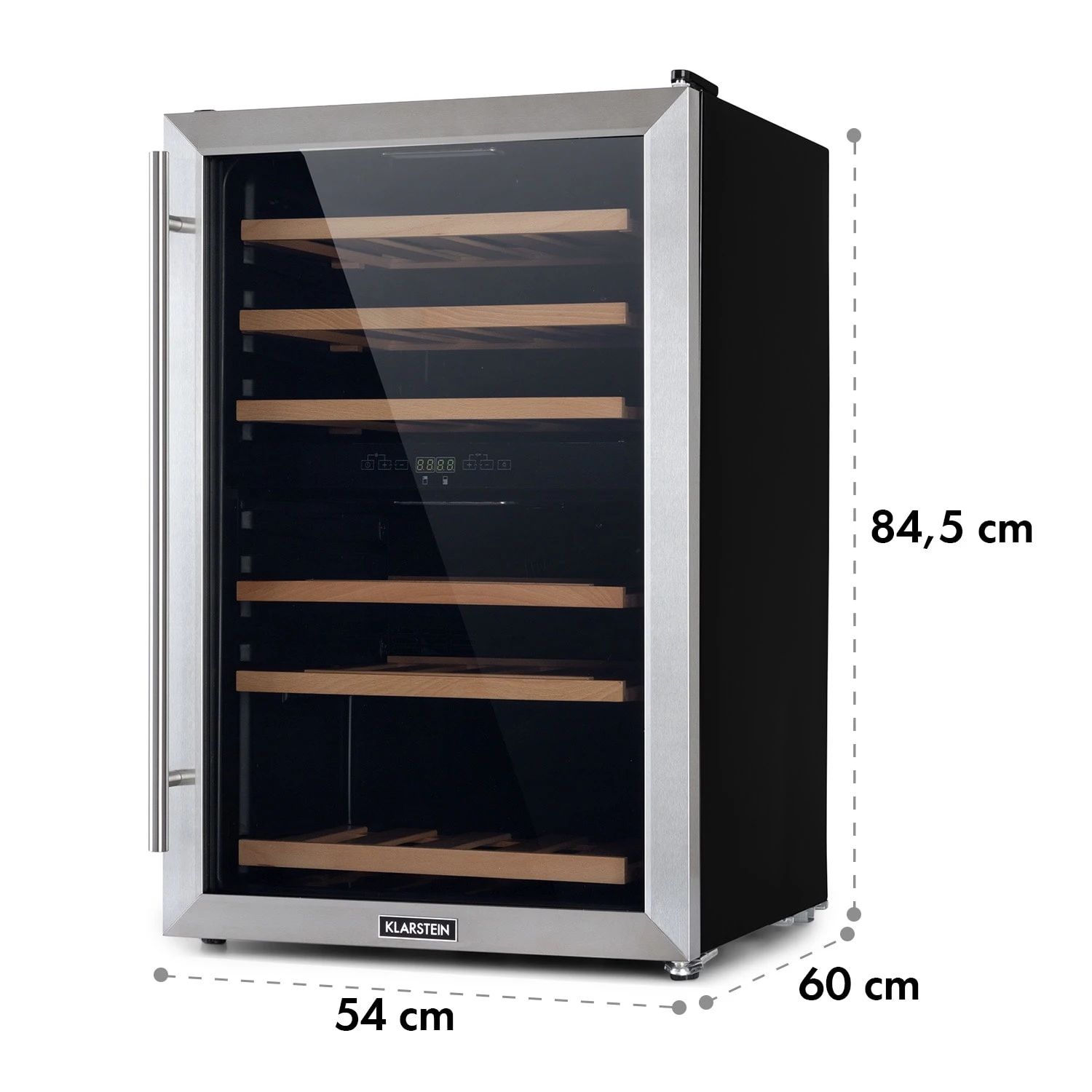 Durch seine edle Kombination aus Edelstahl und Holz sorgt der Weinkühlschrank für ein stilvolles Ambiente und verfügt über zwei separat einstellbare Kühlzonen – so lassen sich Rot- und Weißweine zeitgleich kühlen. Aber auch Sekt, Prosecco oder andere Spirituosen sind hier gut aufgehoben. Über das mittig angebrachte Touch-Bedienfeld kannst du die Temperierung bequem einstellen: 4 bis 12 °C in der oberen und 12 bis 22 °C in der unteren Kühlzone.