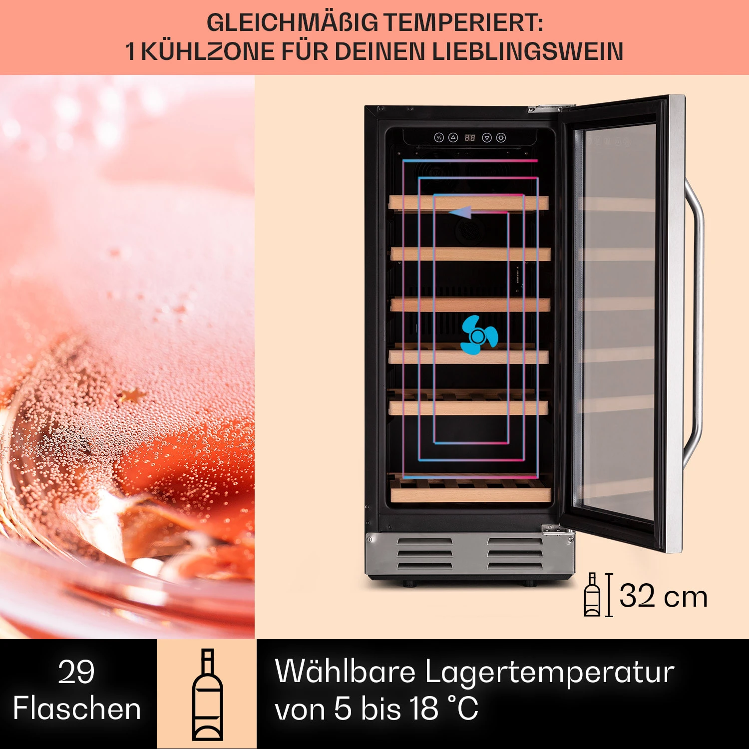 Vinovilla 29 Built-In Weinkühlschrank 81 L / 29 Fl. Glastür Edelstahl