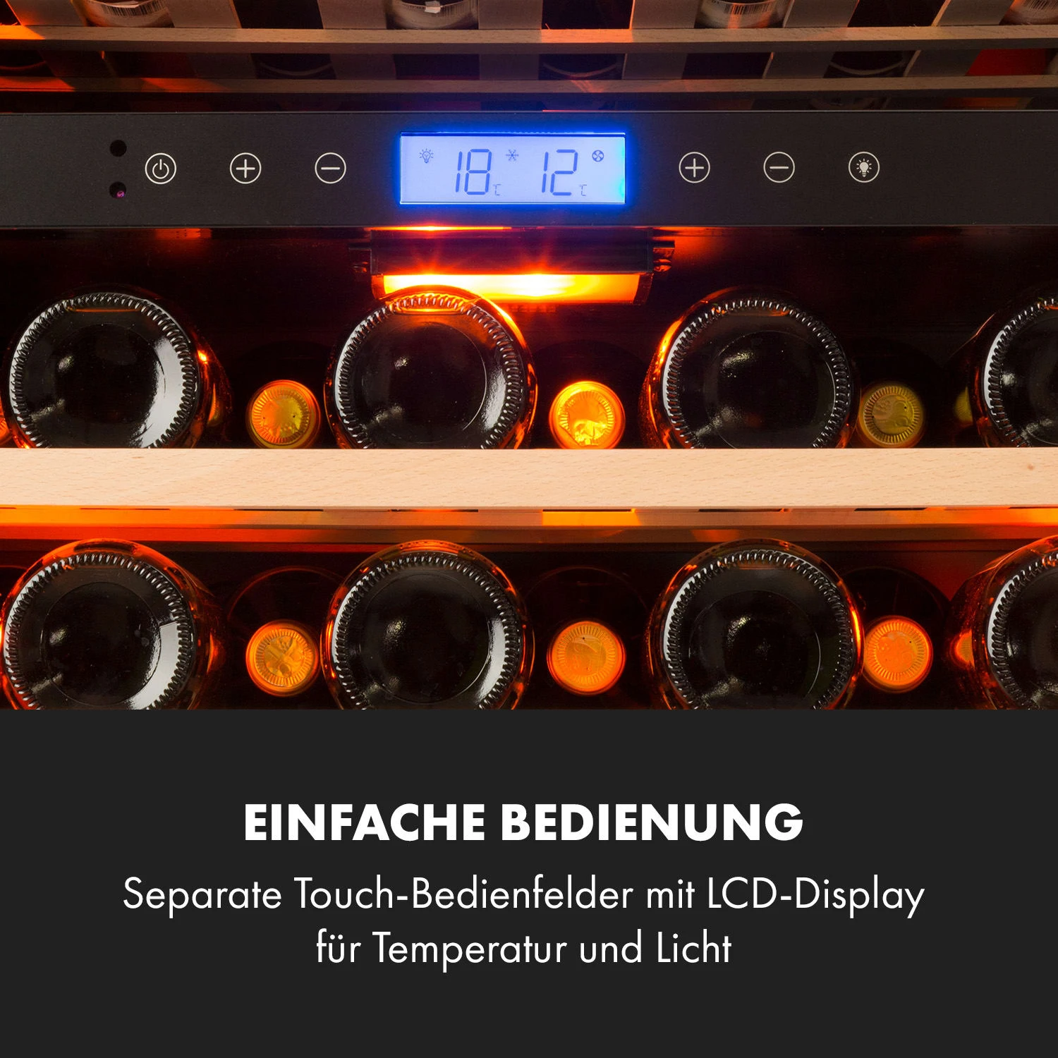 Weinlagerung der Extraklasse: Der Doppelzonen-Weinkühlschrank Vinovilla 43 Built-In Duo Onyx Edition von Klarstein ist ein stilvoller Lagerort und schenkt Weinen die ideale Trinktemperatur.